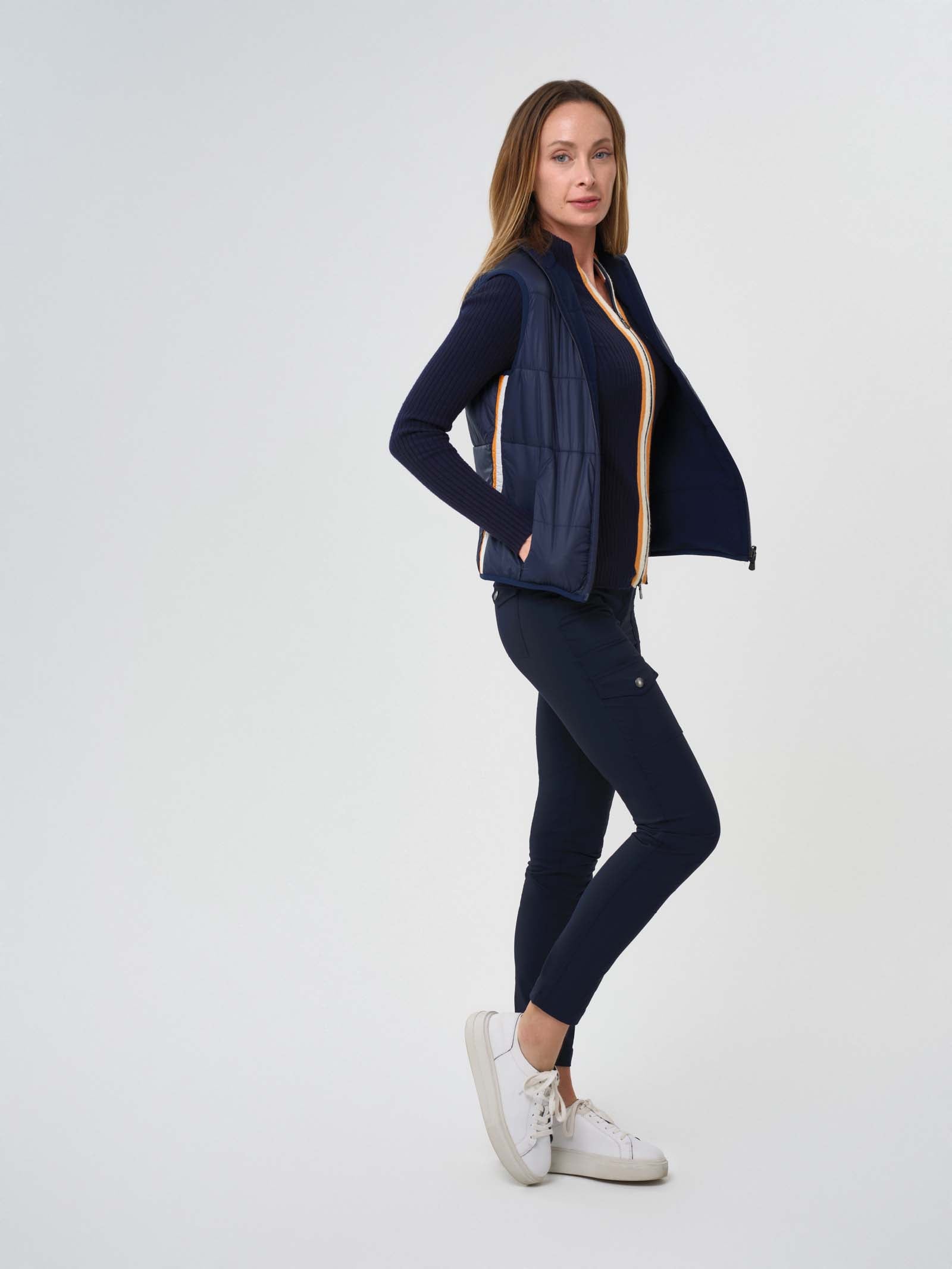 The completely reversible Terry Vest gives you the best of both worlds. Sport the quilted nylon side, with its bright racing stripe down the side, for an upscale athleisure look. Or reverse it and wear the quilted sweater side for a polished and sumptuous presentation. Either way, the Terry is the layer you’re looking for when the weather changes, you’re on a long-haul flight or you’ve just caught a chill. So easy to pack or stash in your bag, you’ll wonder how you ever traveled comfortably without it.