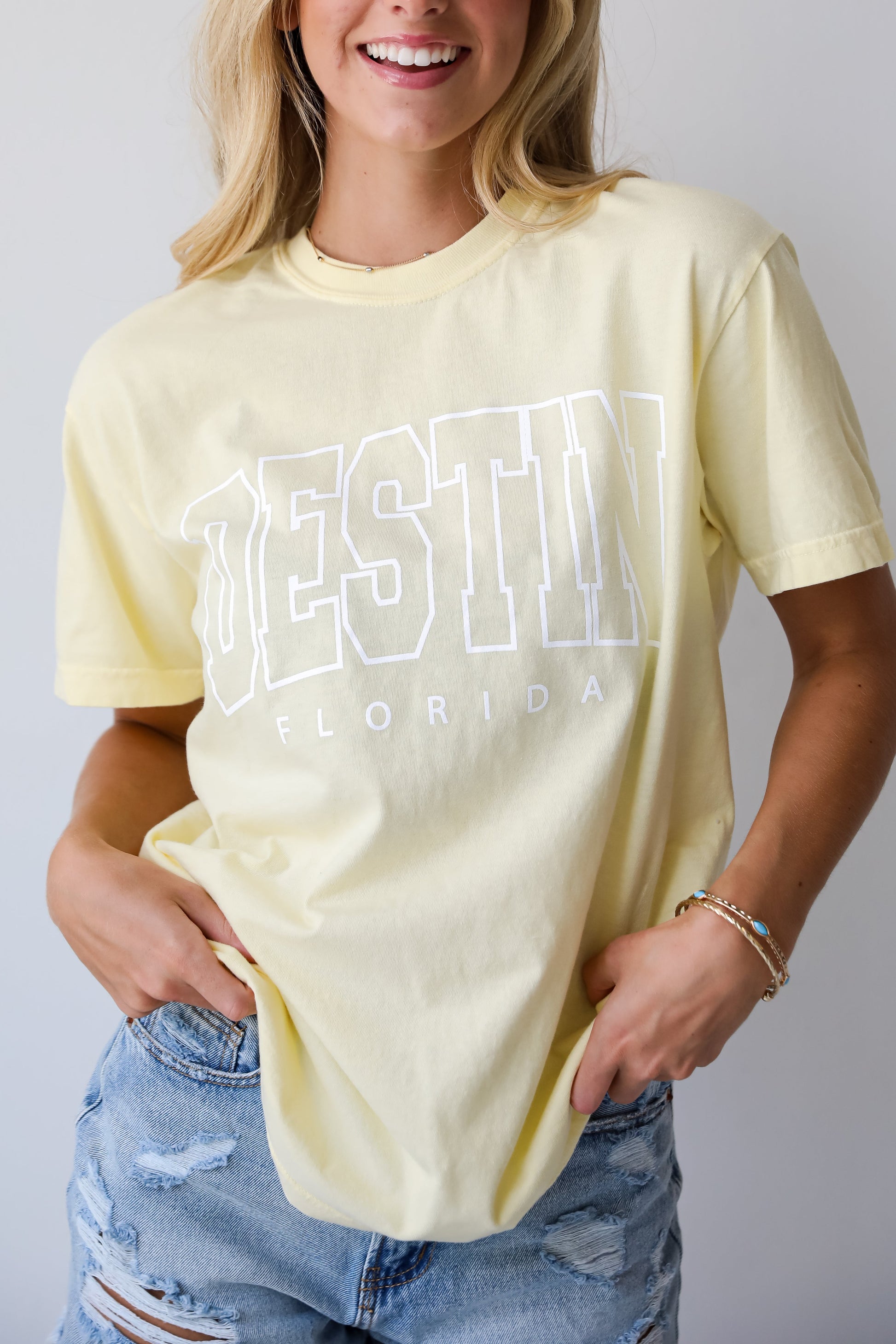 Calling all Destin residents, the Yellow Destin Florida Tee was made just for you! This comfy tee is designed with a soft and stretchy knit. It features a crew neckline, short sleeves, a relaxed fit, and the words Destin Florida on the front. Style the Yellow Destin Florida Tee with your favorite denim shorts and sneakers for a casual daytime look!